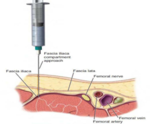Fascia iliaca compartment block for pain relief for patients with a hip fracture